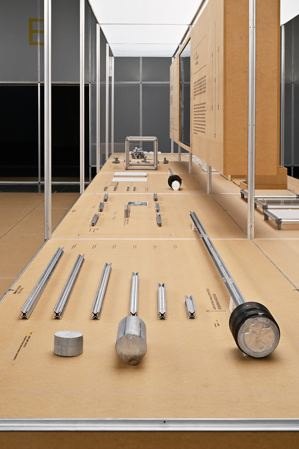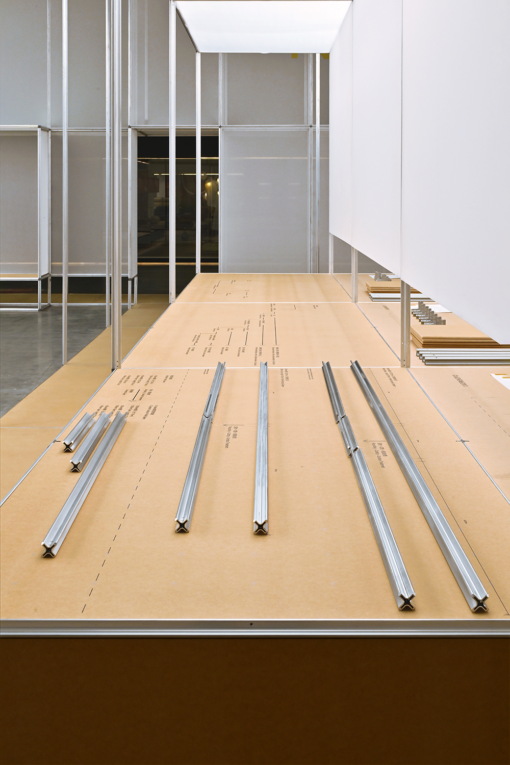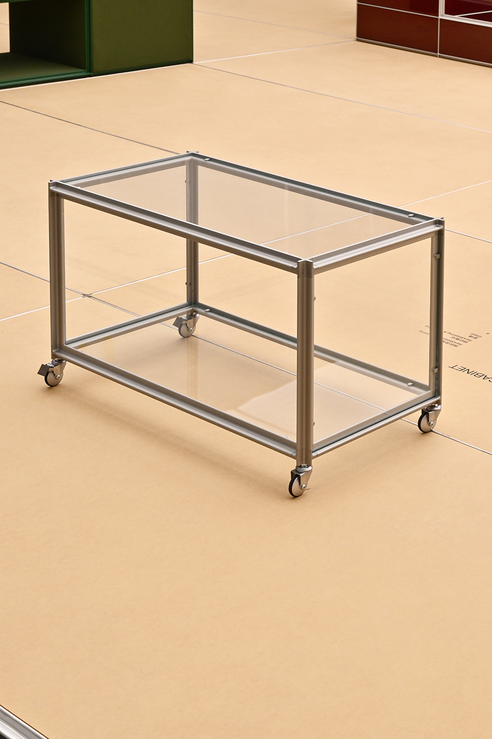 ① The exhibition uses a workshop trolley built with X System to distribute the manuals elsewhere inside the workshop.