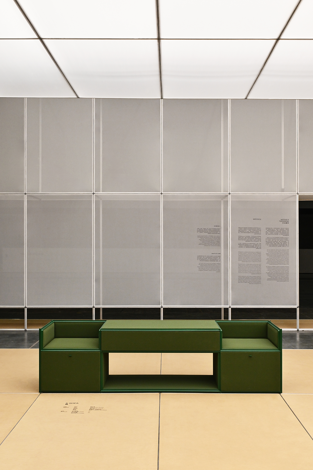 ② The mesh fabric used in the booth is the same type as used in Mario Tsai Studio's "Soft Power" design project.