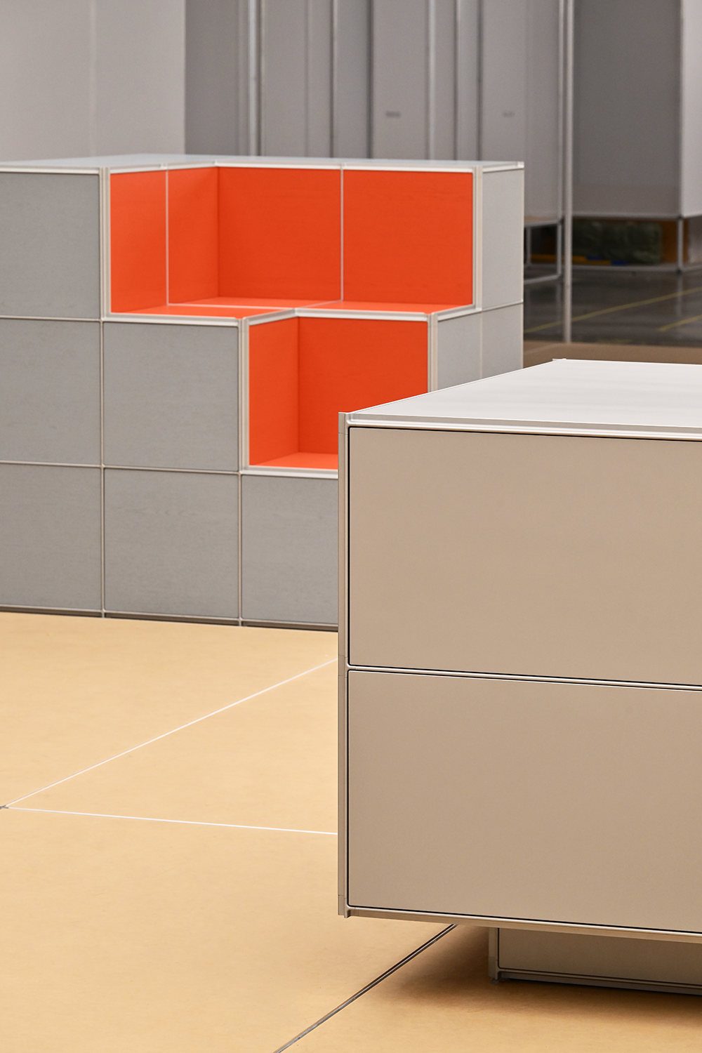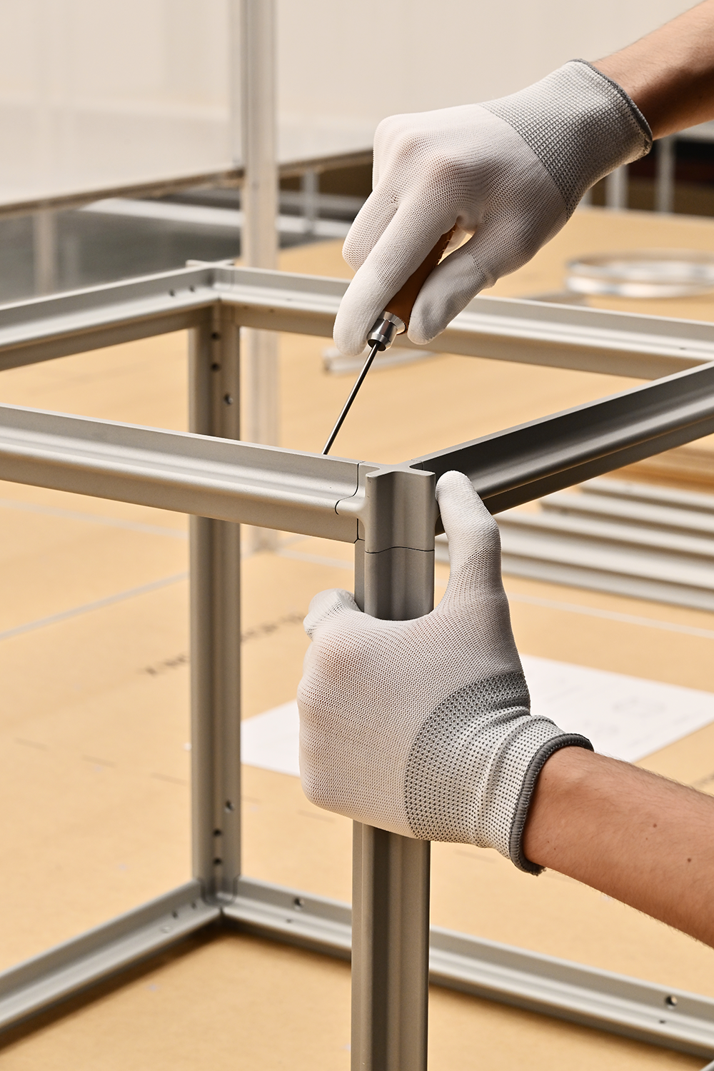 The basic modules—composed of aluminum profiles, joints, and panels—are highly adaptable and combinable with various materials and accessories to create different kinds of furniture. In manufacturing terms, the limited assortment of components, quantifiable workmanship standards, and simplified processes reduce the risk of errors caused by complex procedures or manual work, enabling more precise compatibility between design and production.