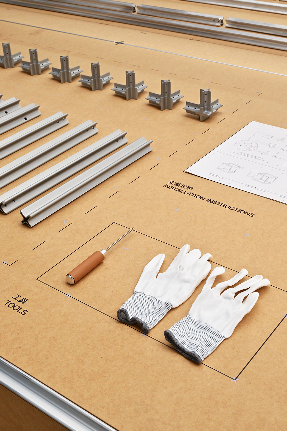 Outside the four core workshops, there is an "Assembly Workshop" for live demonstrations of basic unit assembly. Visitors can participate, bringing people closer to the product. The other side of the assembly station explores X System’s sustainable design—through recycling and processing, materials and components may be reused in furniture and exhibitions.