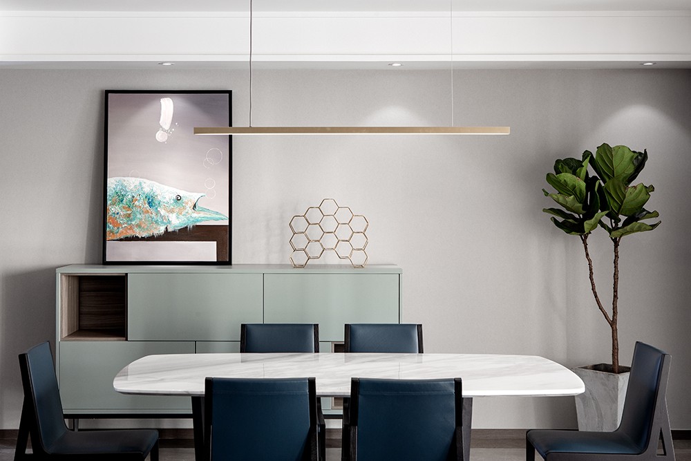 打开生活的味蕾,平淡中有舒缓,也有沉寂。点缀几抹靓丽的色彩,让不同色调在光晕中烘托出空间的惬意与平静。与家人一起围坐在此,便可享受这暖暖的温情。