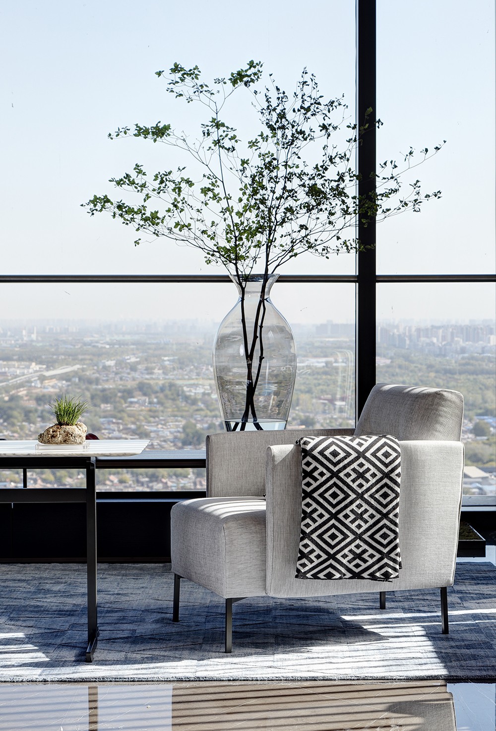 设计师赵树先生说:“作为万物·云之云安项目室内设计的负责人,我力求让每一件物品都处于恰当的位置,和谐依存。空间是有限的,但意蕴却可以无限。家具、饰品虽然形态不同,但我希望它们都能让人处处感受到满溢的清澈与自然之美。”