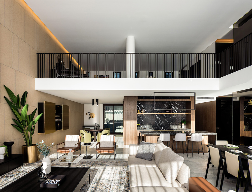 透过露台,将私人空间与城市天际线风光为邻,在繁华的商业中心附近也能享受低层大宅的闲适生活。