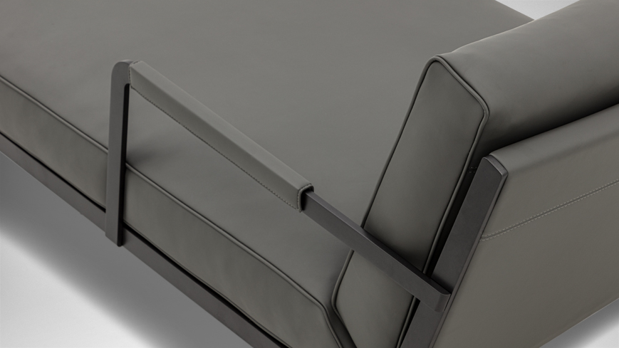 轮廓清晰,皮质滚边勾勒出流畅的侧面线条,于目所能及的舒适感中加入极简的笔触;冷质金属扶手与暖质软包搭配的相得益彰,硬朗的外壳下藏着柔软的内”芯”和恰到好处的关怀。