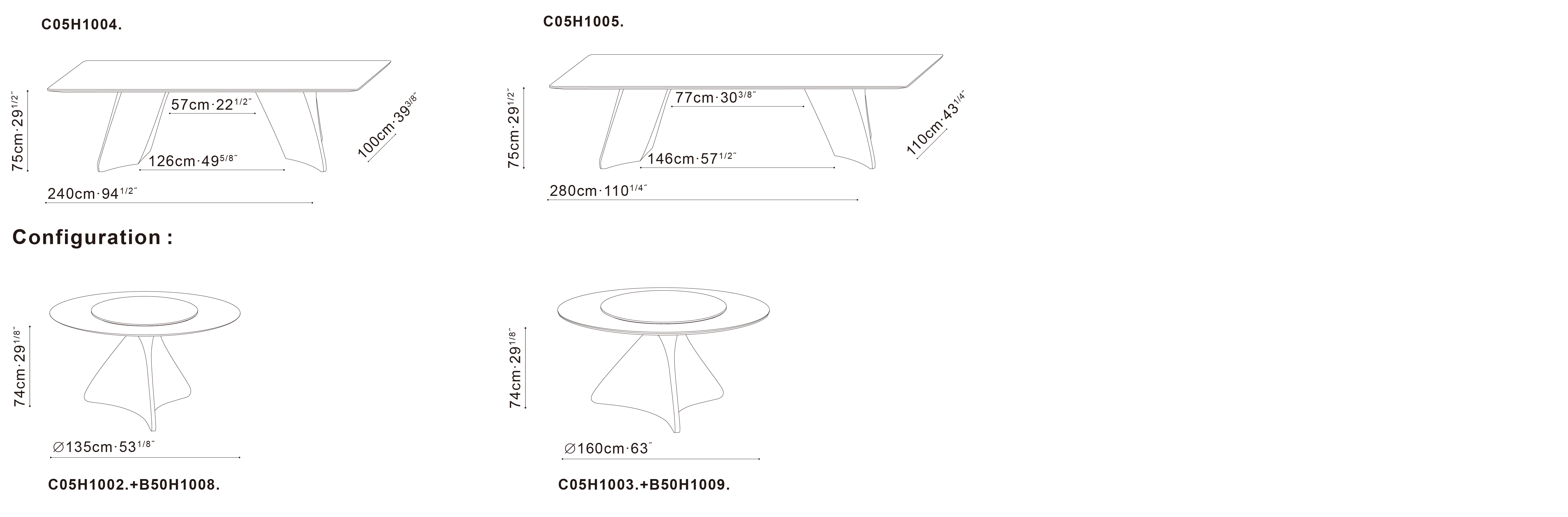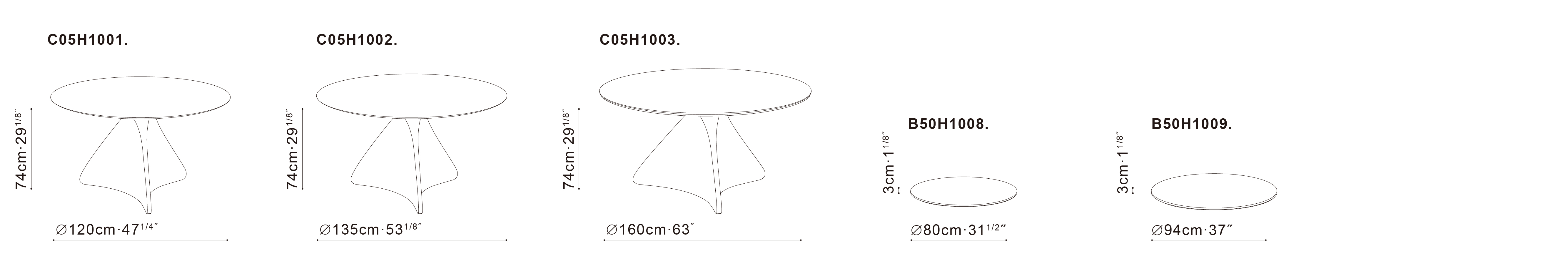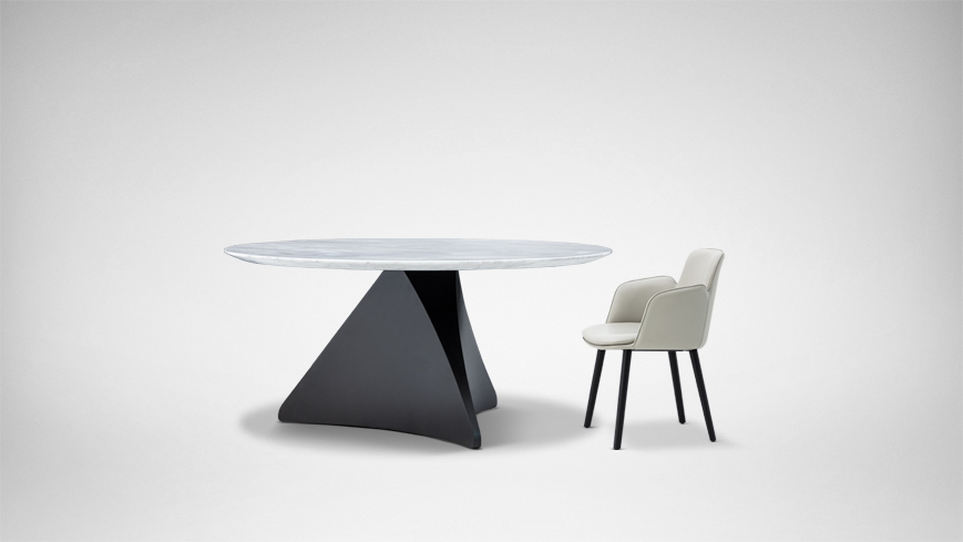 整个系列在追寻美与科技感的平衡。腿部造型灵感来源于有机建筑和自然峡谷的表面形式,通过夸张的曲面变化形成极具张力的视觉效果。多种桌面材质和底腿颜色的搭配满足了不同人群的需求,圆餐桌配置的转盘丰富了产品的实用性。SPIN旋系列包括餐桌和荣耀体育(中国)。