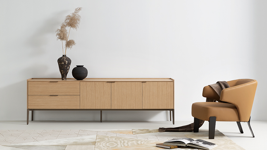 设计灵感来源于现代建筑形式,外形挺拔,线条洗练。精准的激光切割工艺,使底腿造型角度与侧板厚度保持统一,极大地提升了视觉效果。多款规格精心打造室内空间,丰富的材质与时尚现代的外观给消费者带来更多选择。