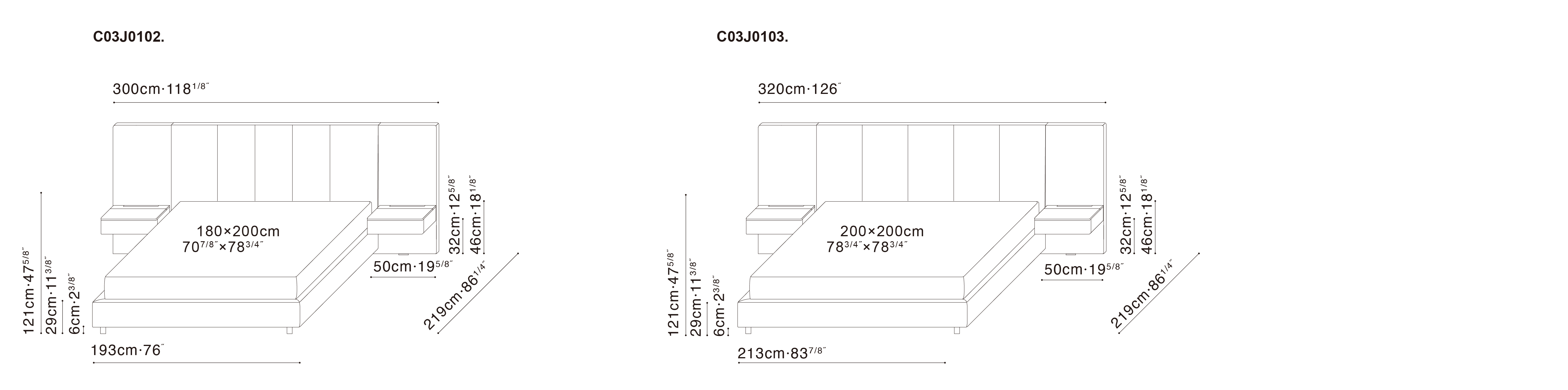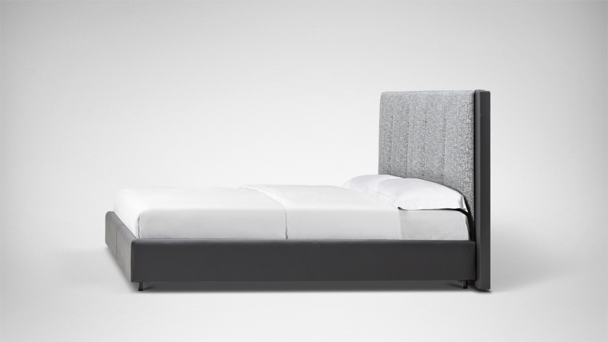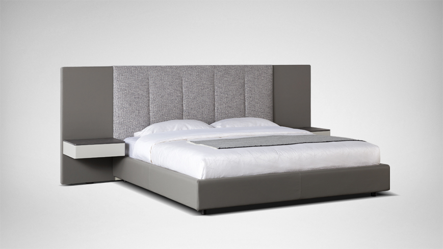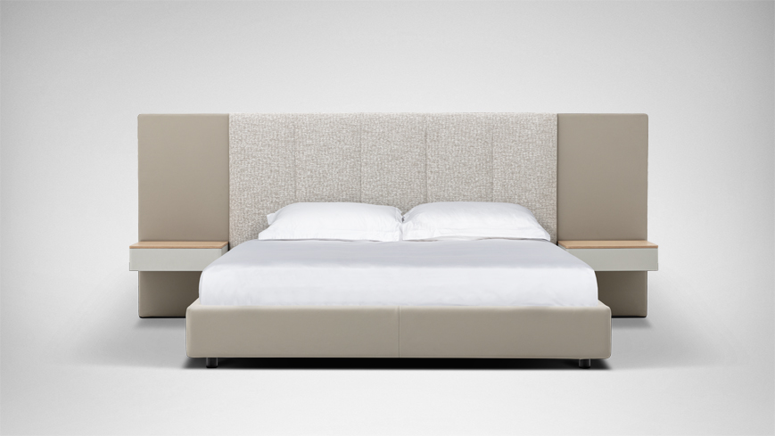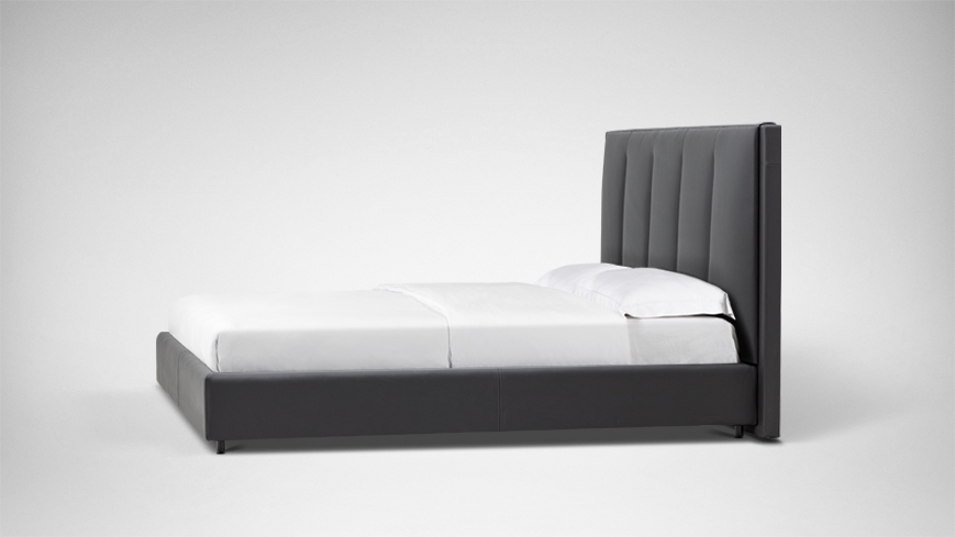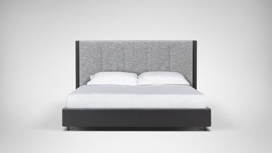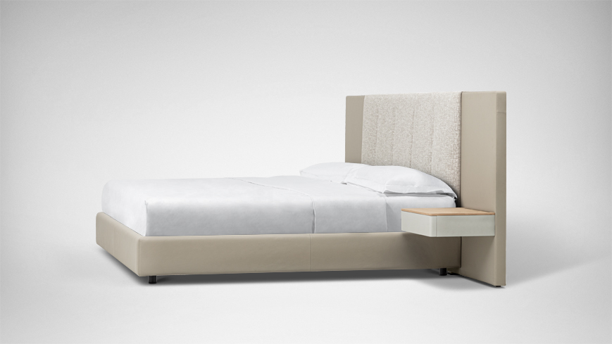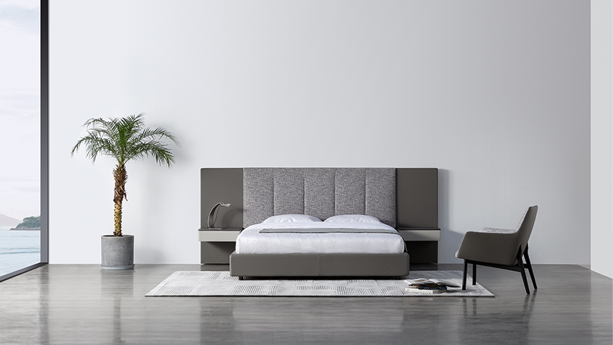 高床背设计灵感来自巍然耸立的山川,营造开阔、延绵的视觉美感。起伏的软包与硬挺的背板让柔美与秩序并存;丰富的肌理细节,带来虚实相交的层次对比。