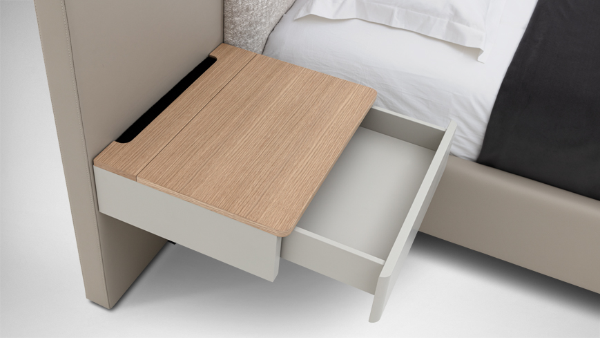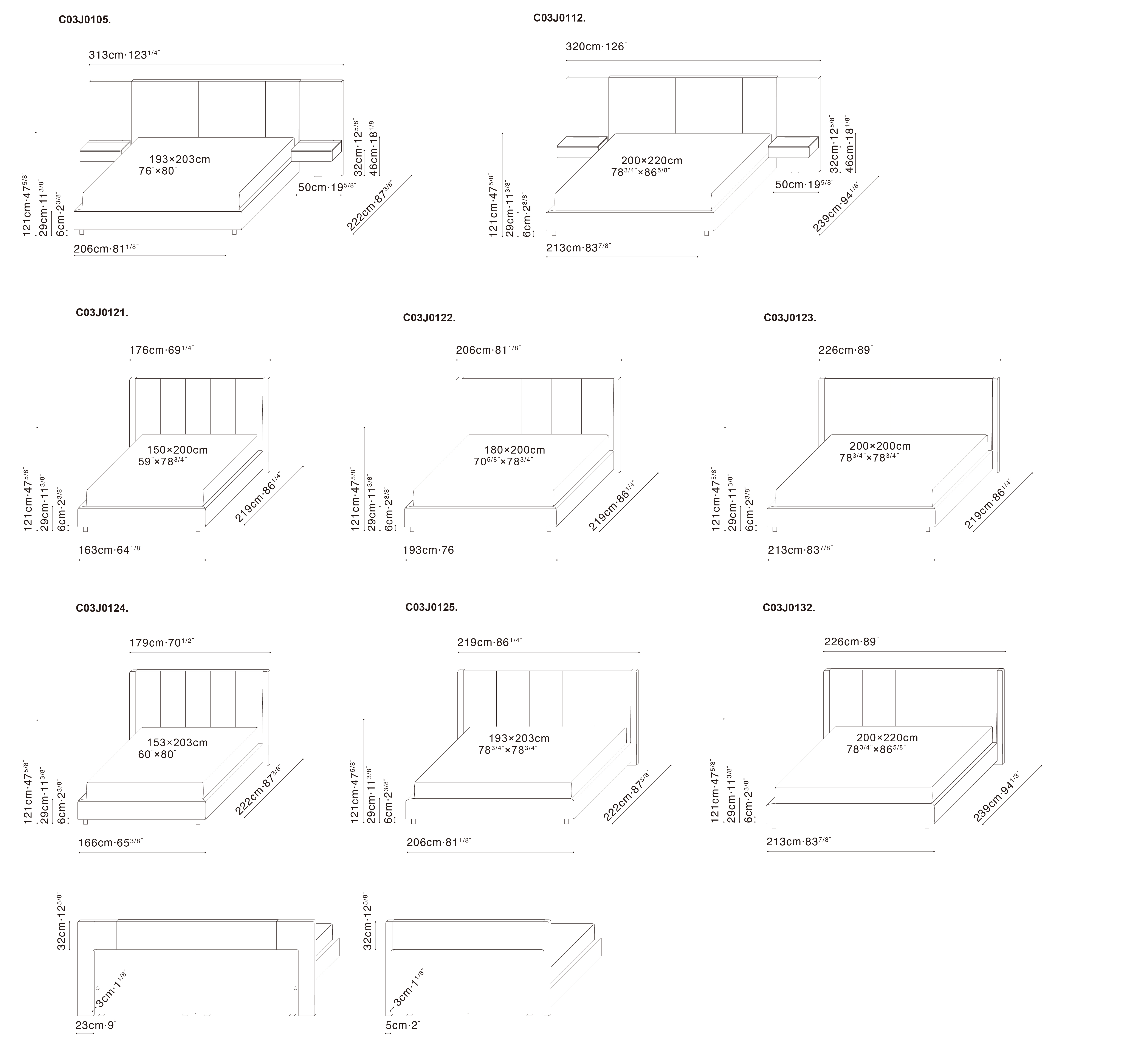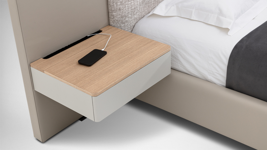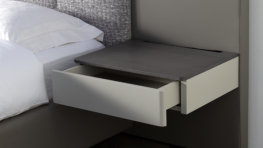 提供有屏风和无屏风两款选择;有屏风床体两侧配有一对悬空抽屉,预留插排位置,体贴到每个细节。