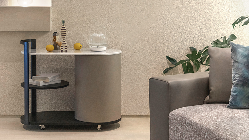 星月茶车外形优雅圆融,隐藏式储水和走线设计令室内整洁美观。