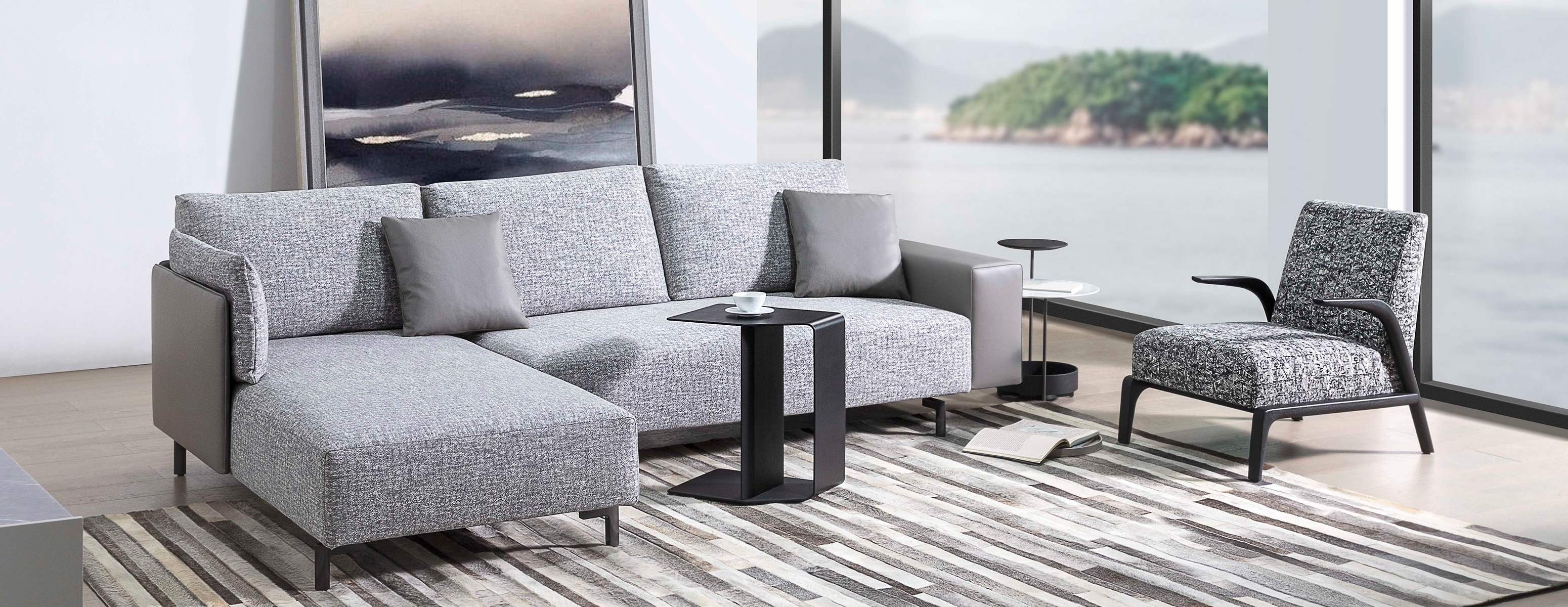 设计灵感来源于中国的甲胄元素,融合了中国传统文化和西方设计理念。方正、挺拔的外框,宽窄不同的扶手,搭配造型独特的靠垫和整体设计的坐垫,精致与舒适兼备。