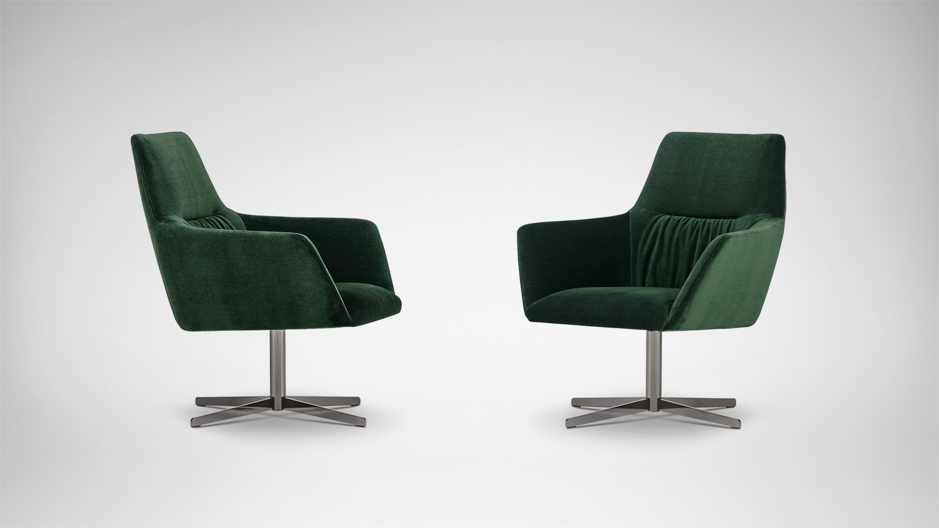宽阔的造型给人更多自由空间,既有木腿托起的稳重,也有金属腿旋转带来的愉悦。