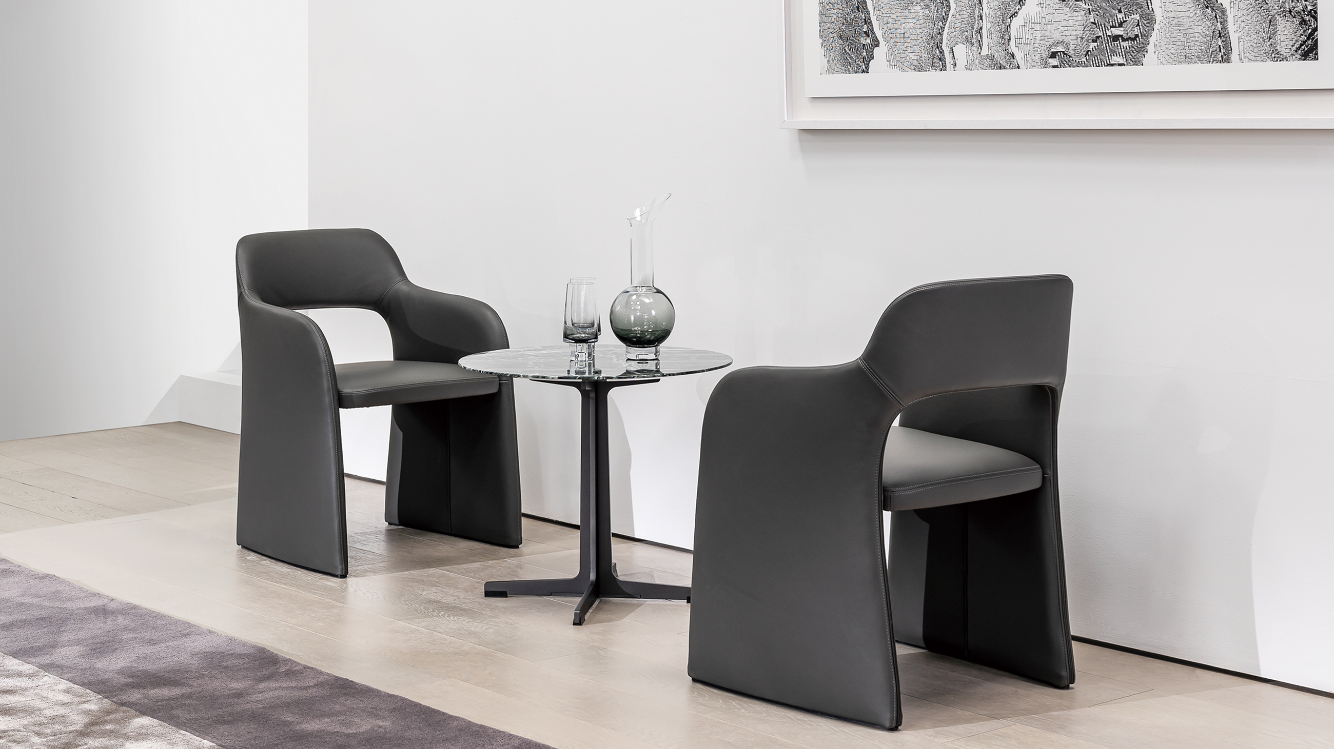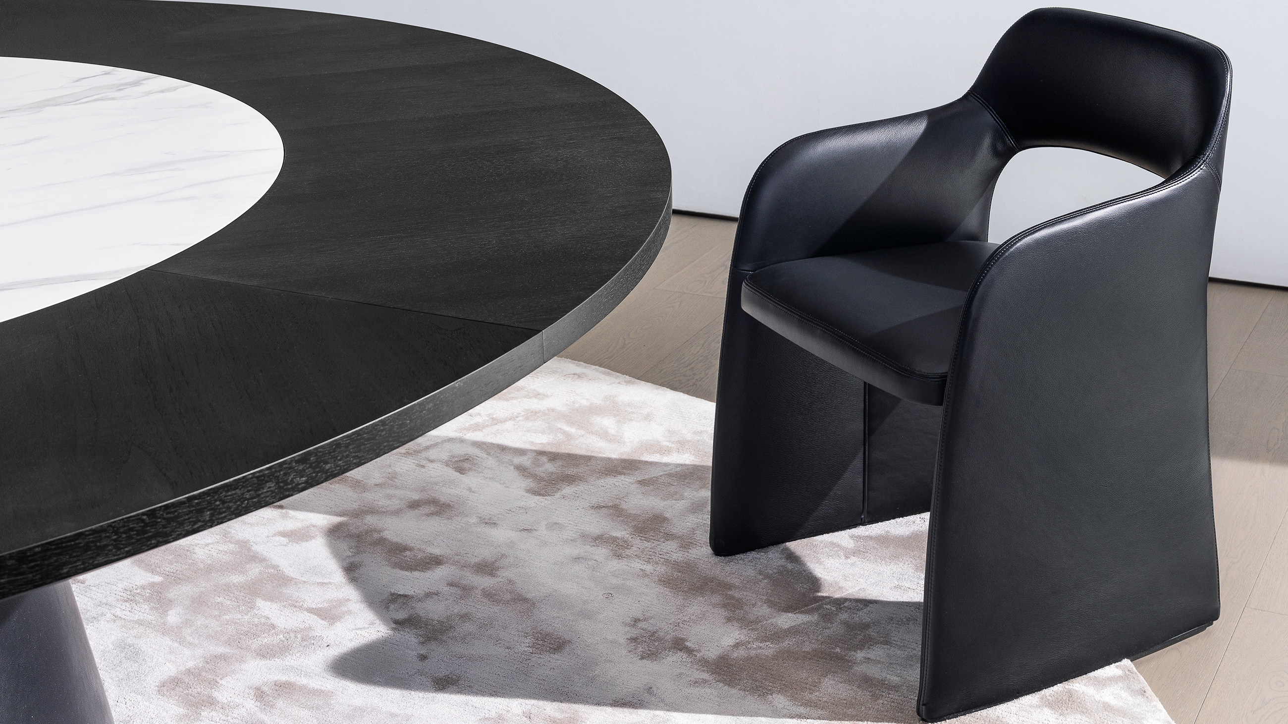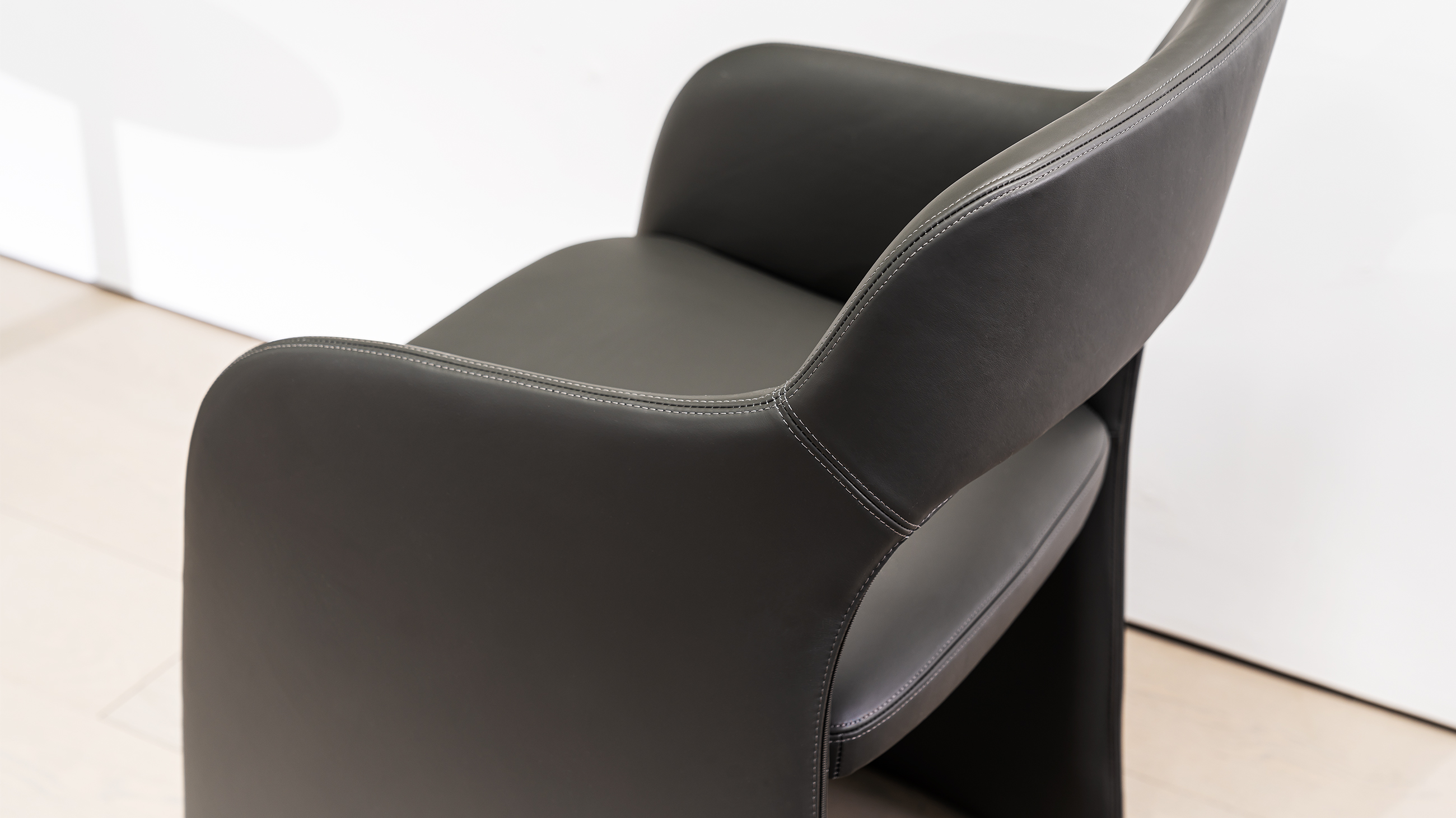 突破椅子的传统造型,包裹感十足。流线型的扶手、靠背造型,与镂空设计相映,视线留白、通透秀美。