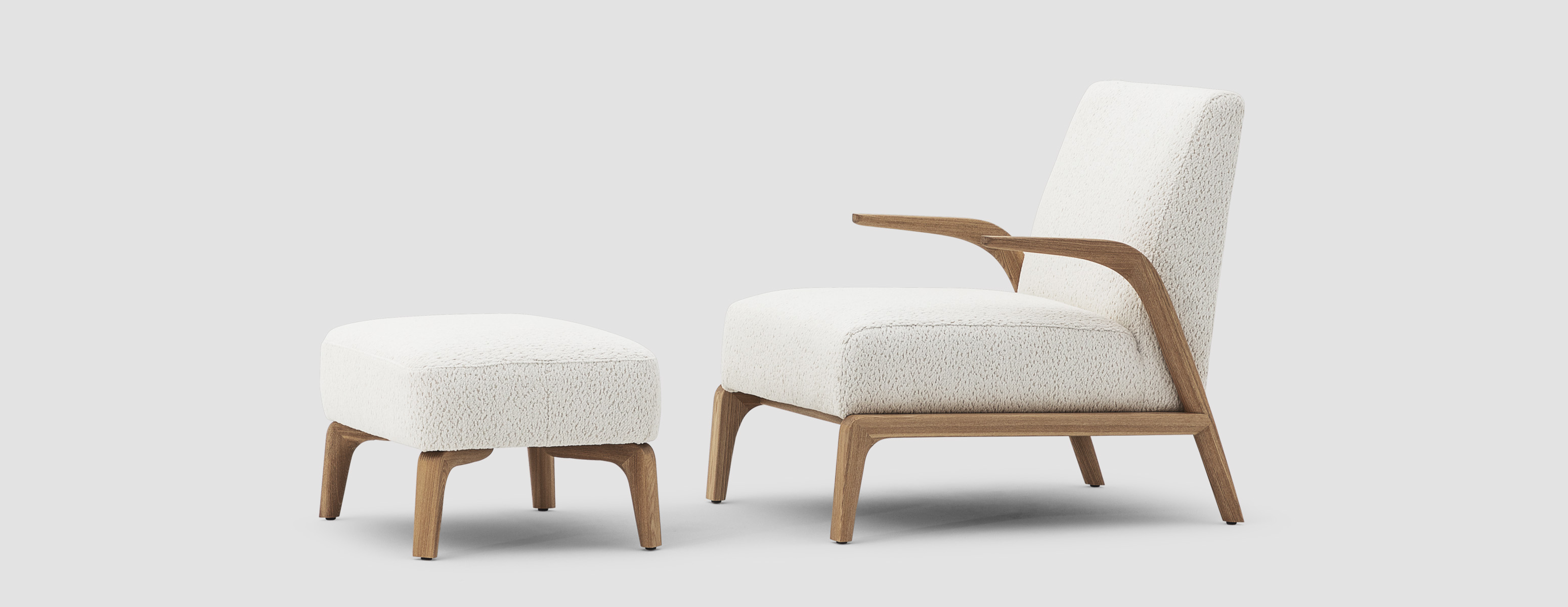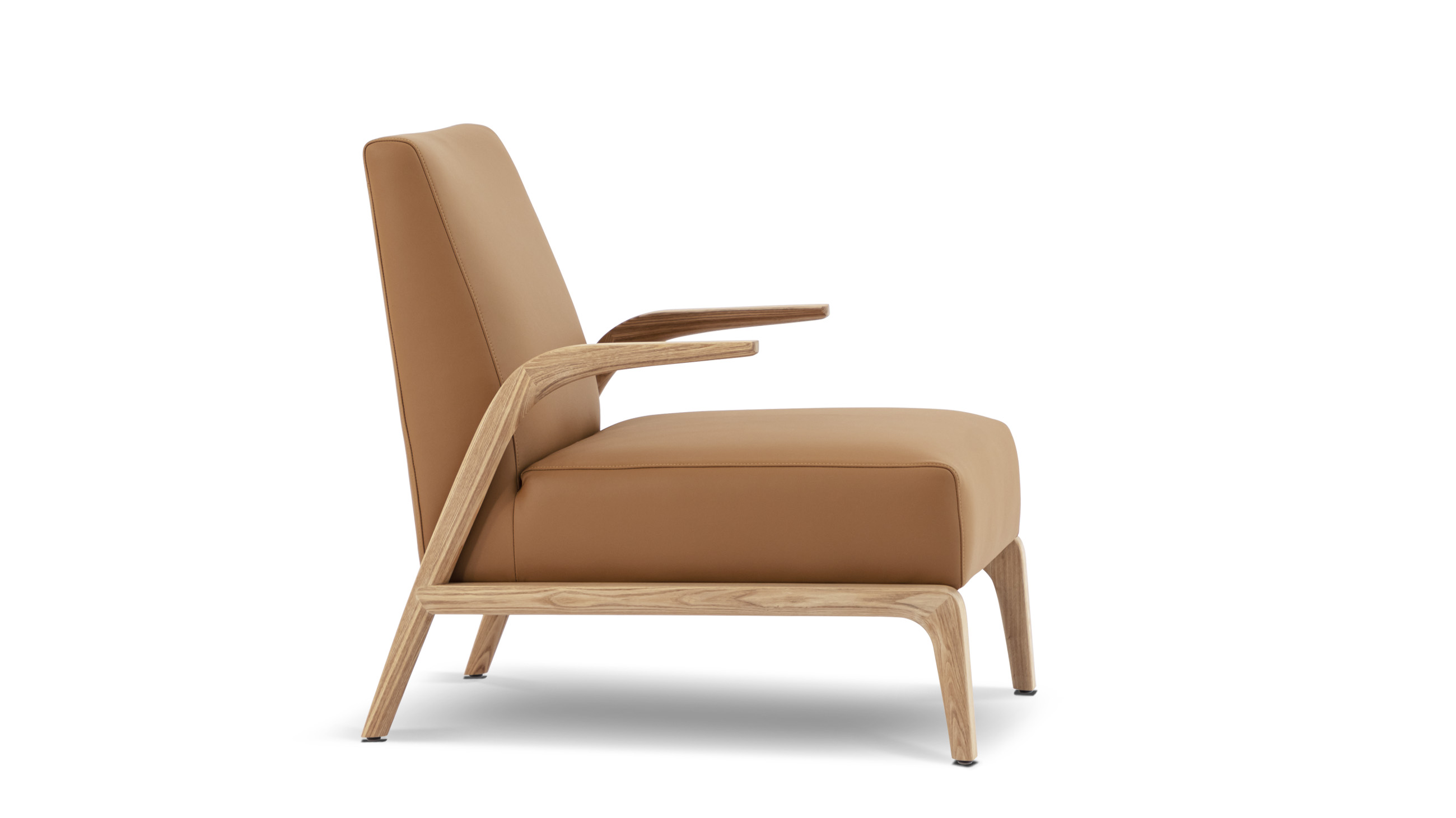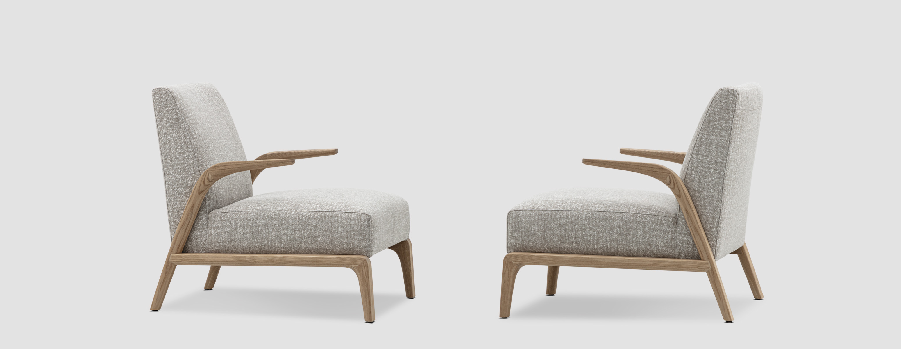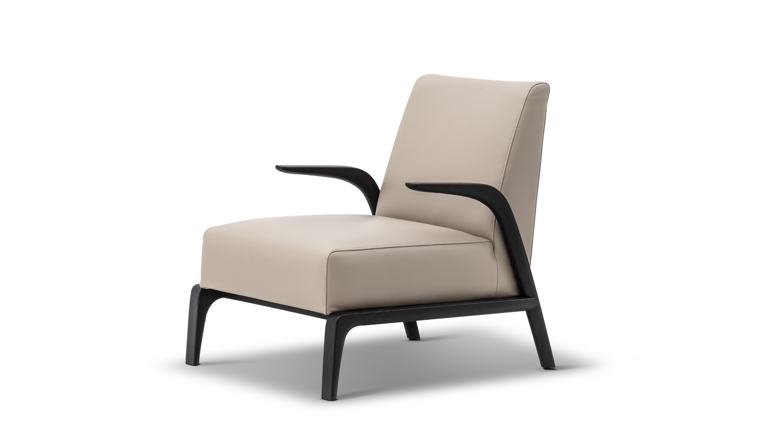 悬空的实木扶手如风中的柳叶般舒展开来,与厚实舒适的坐感相映成趣。