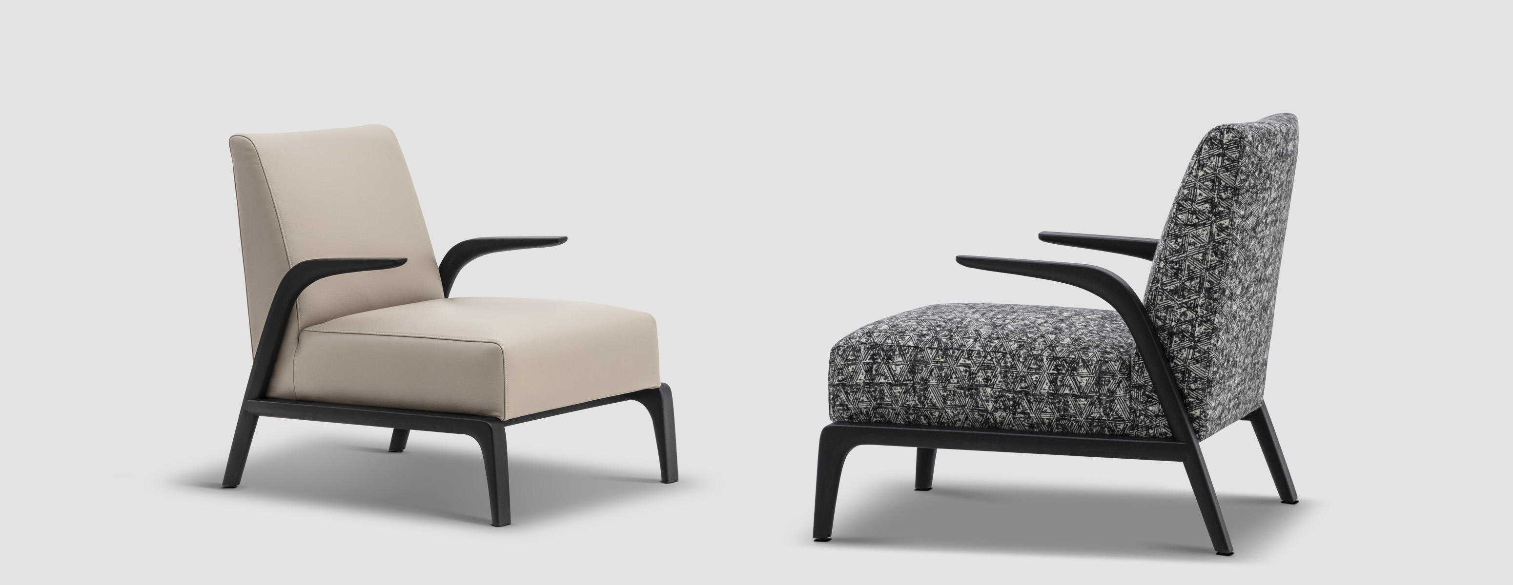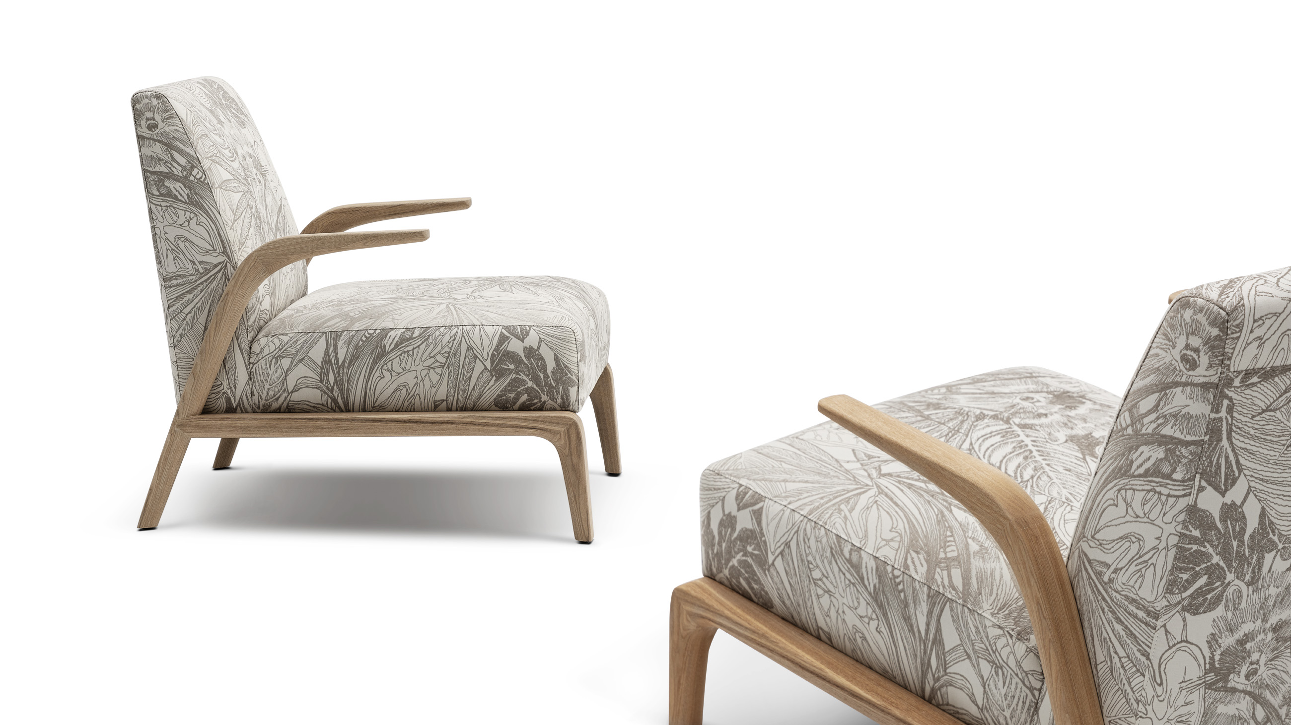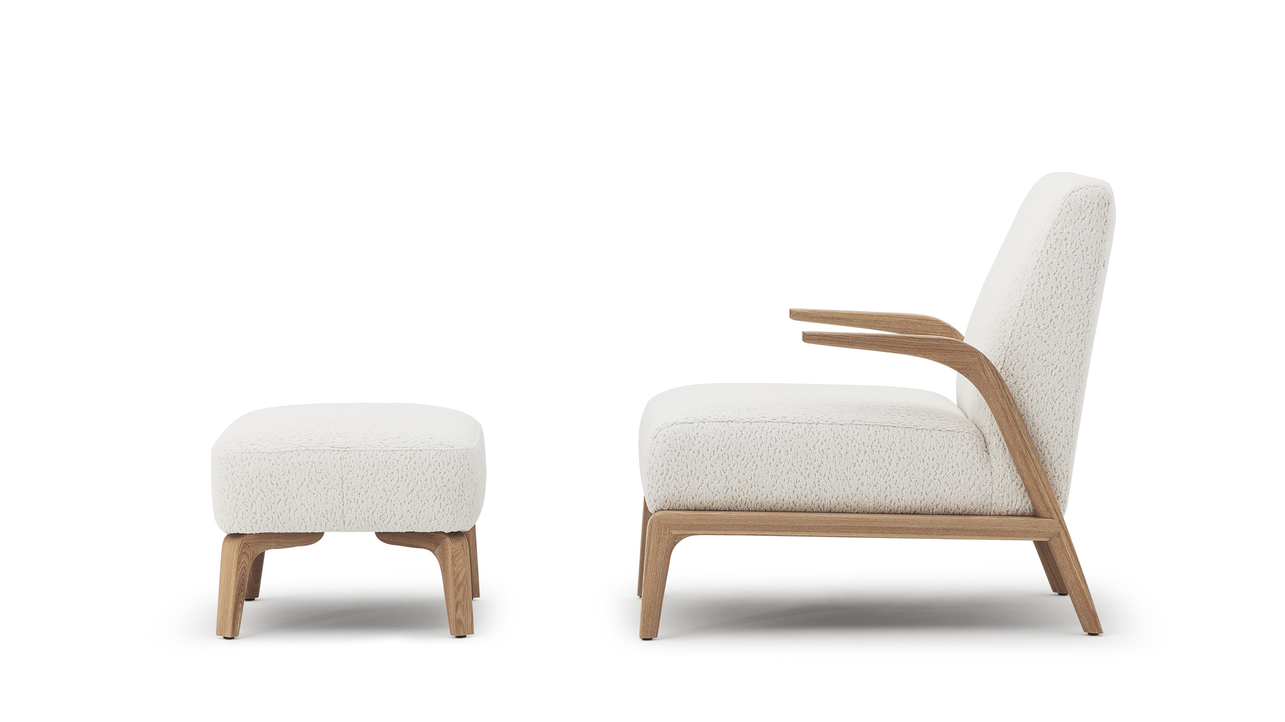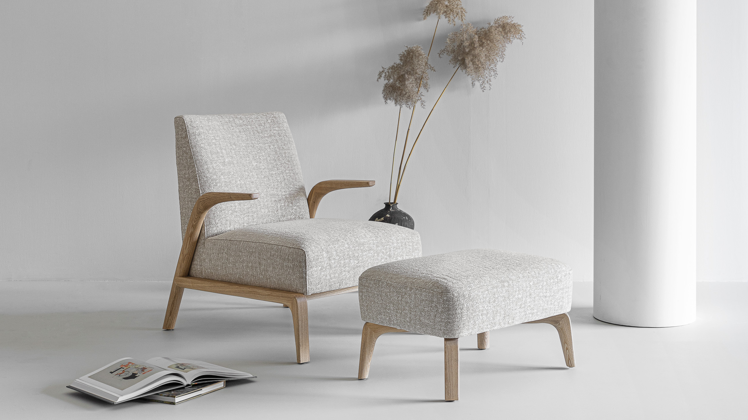 悬空的实木扶手如风中的柳叶般舒展开来,与厚实舒适的坐感相映成趣。