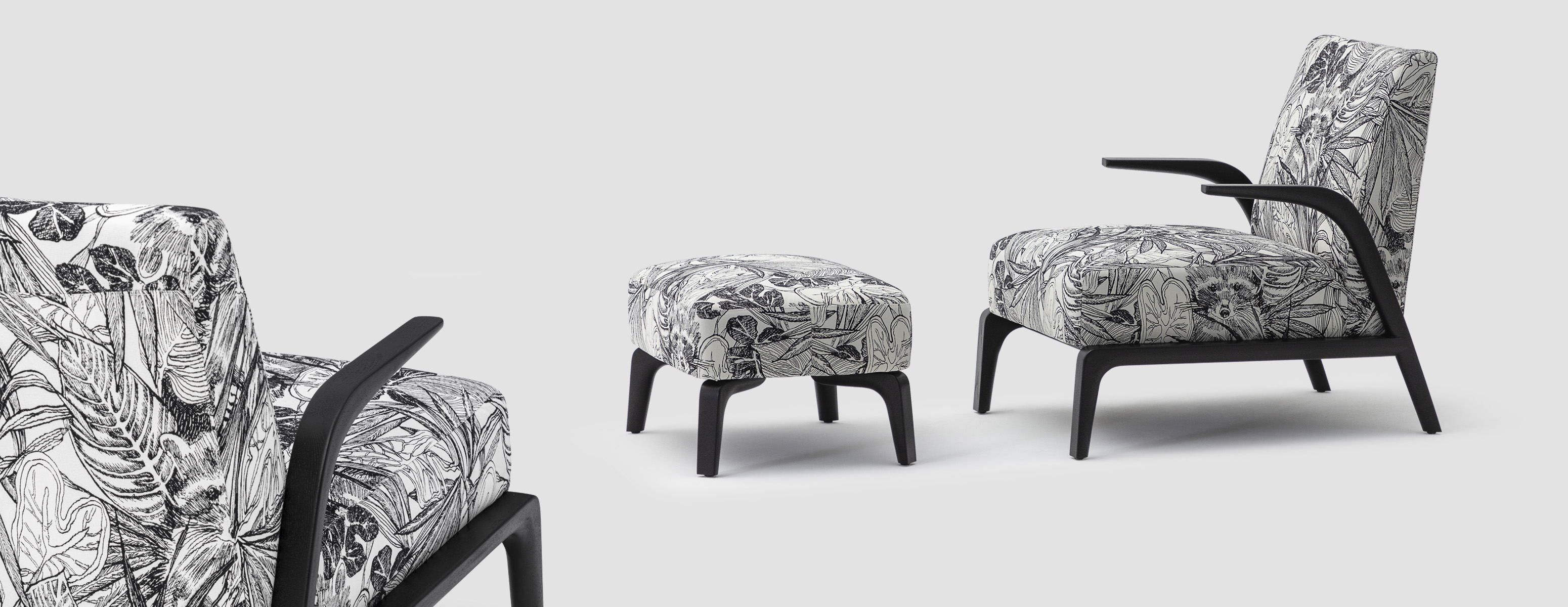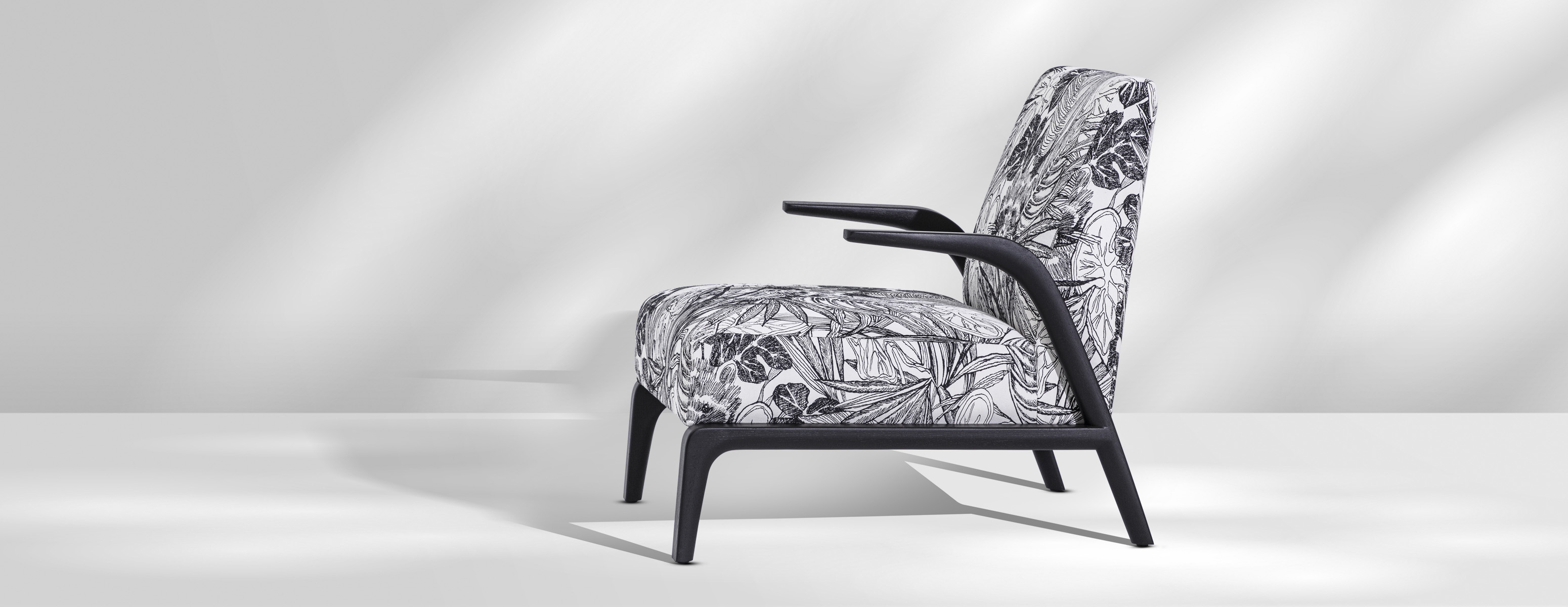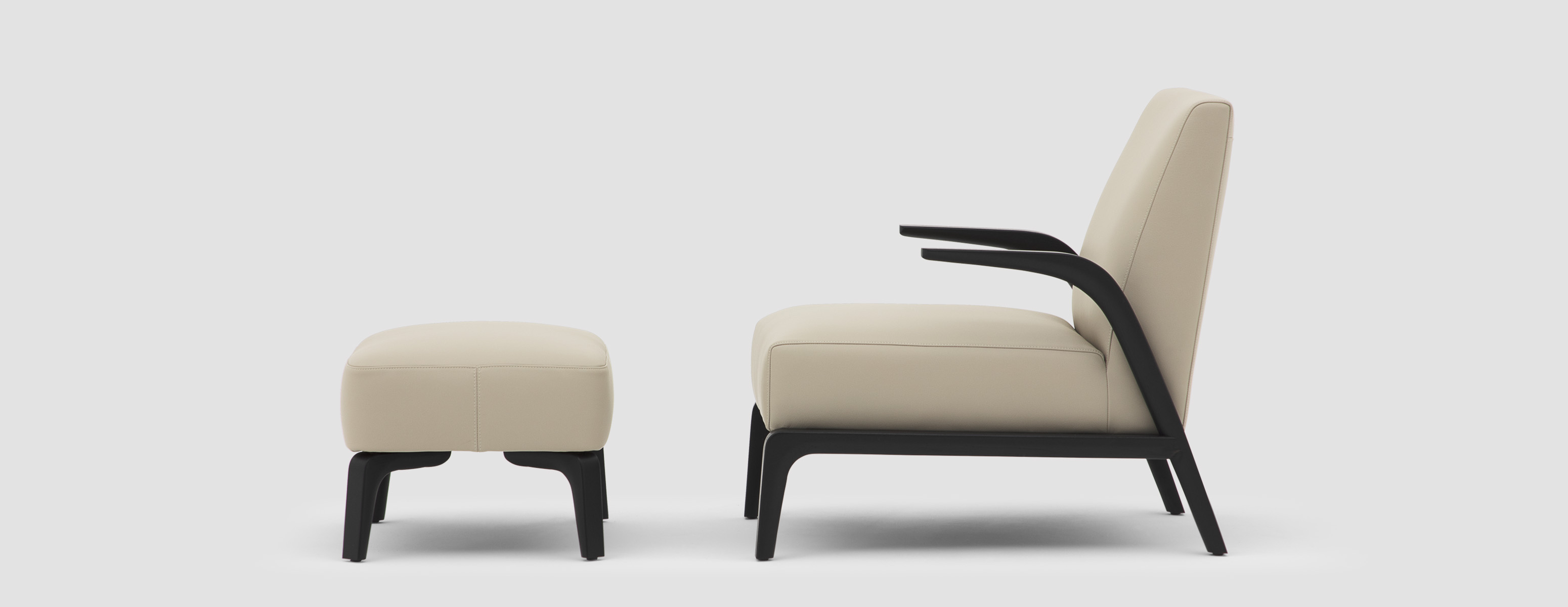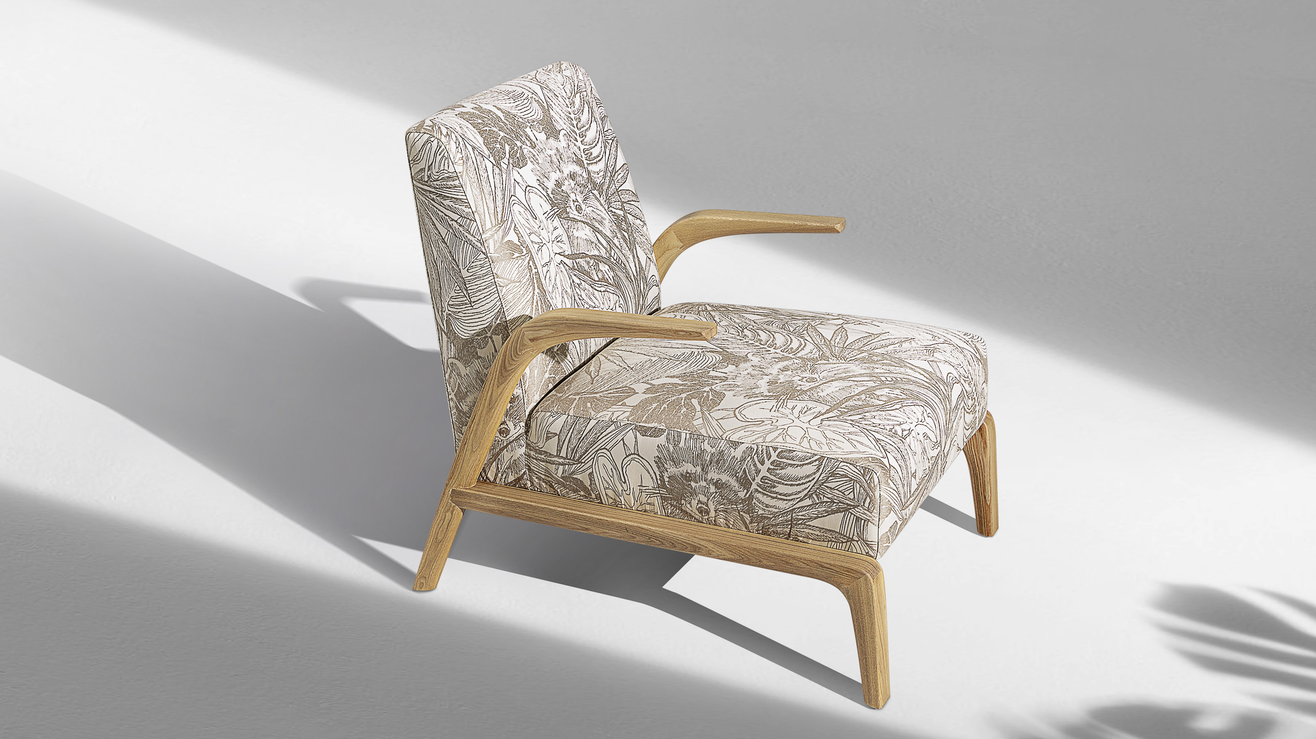 悬空的实木扶手如风中的柳叶般舒展开来,与厚实舒适的坐感相映成趣。