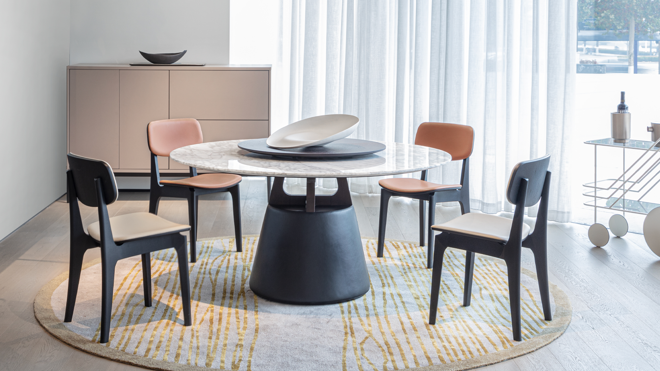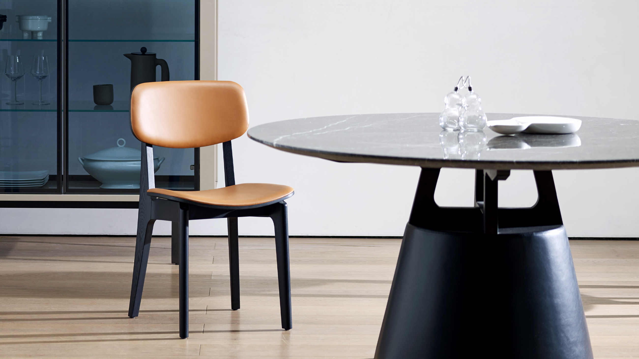 实木与皮的组合,曲线弧度的勾勒,充分体现出设计美与价值感。