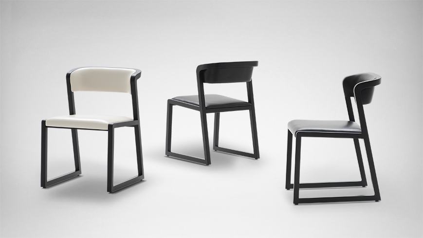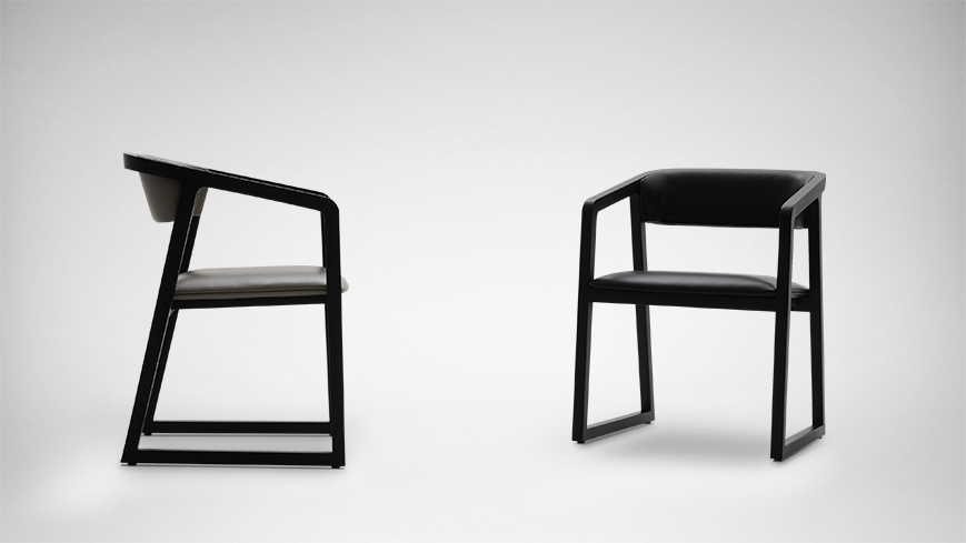 设计灵感源自中国古典明式家具,几何图形的椅身结构轻巧简练,整体上带给人通透大气,沉稳端庄之感。