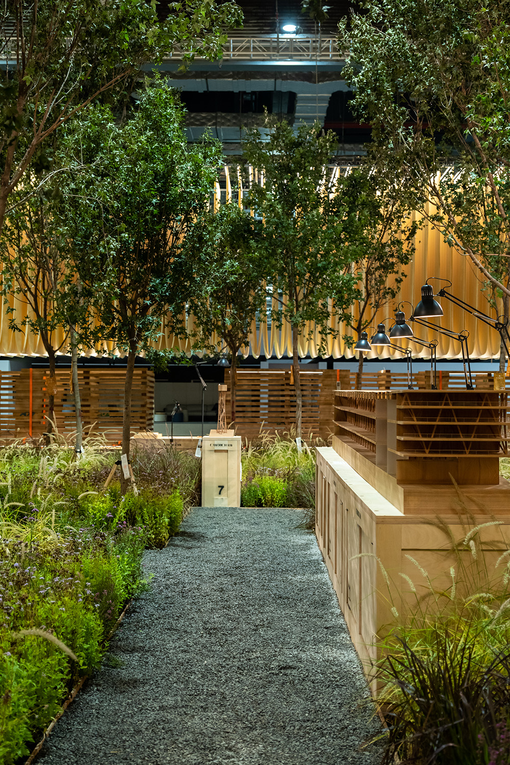 「花园」内的树木、绿植及地面碎石在展览结束后都会运转至嘉兴园区,成为景观绿化的一部分。