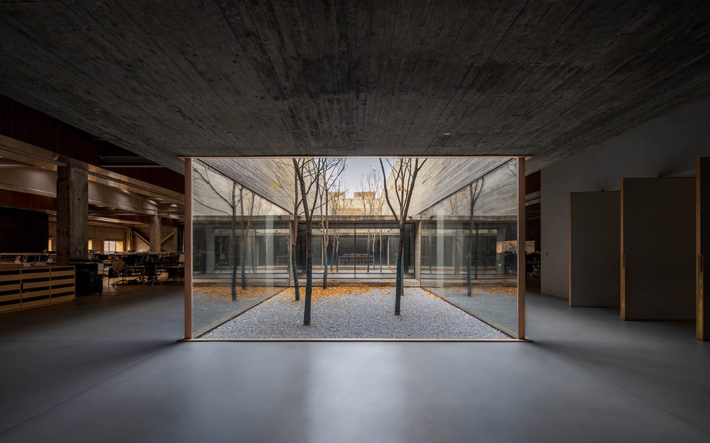 中庭庭院不仅满足了采光的需求,更可以让员工在办公中感受昼夜的变化和四季的变换。
