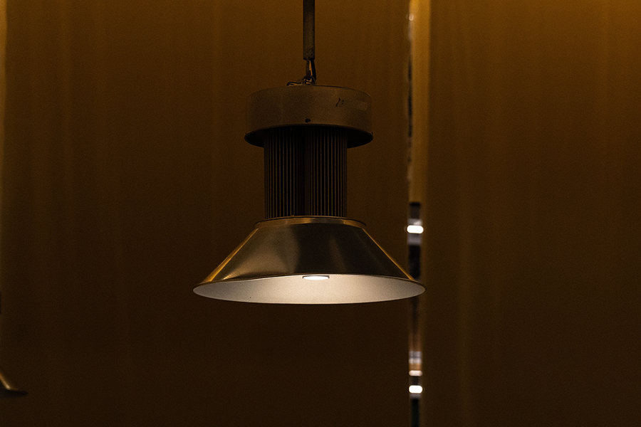 展览的中心“剧场”有8个“舞台”,每个点位上都悬挂一盏灯,当有一件新的包装箱放在灯的下面时,会把这盏灯调到最高的亮度。这是工厂车间中最常用的照明灯具,在这次展会中重新为它们配置了可调节的光源。