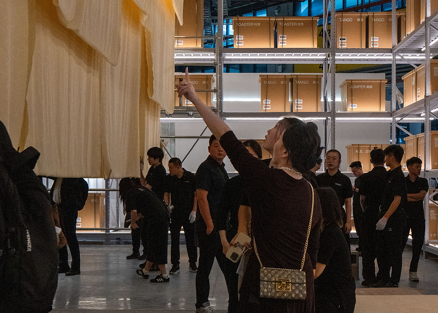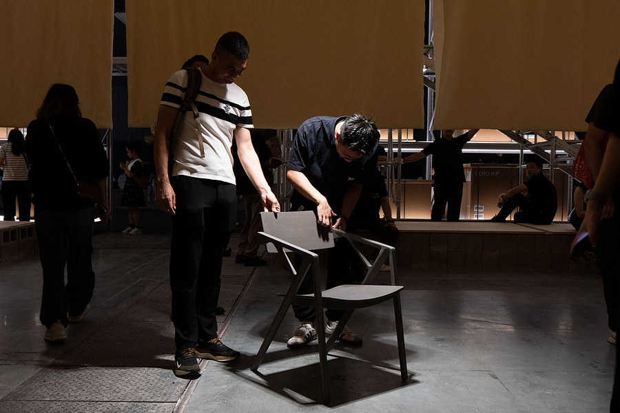 「移动仓库」不仅是一个场所,也是一种动态表现。它传达了一种谦逊的设计理念:让建筑退居幕后,成为一个框架,聚焦于人与人、人与环境之间的互动,在展示锐驰“制造”幕后故事的同时,也随着锐驰(嘉兴)超级工厂趋近投产,展览也宣示了品牌对创造高端制造的愿景。