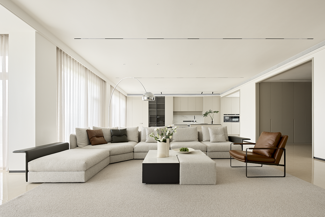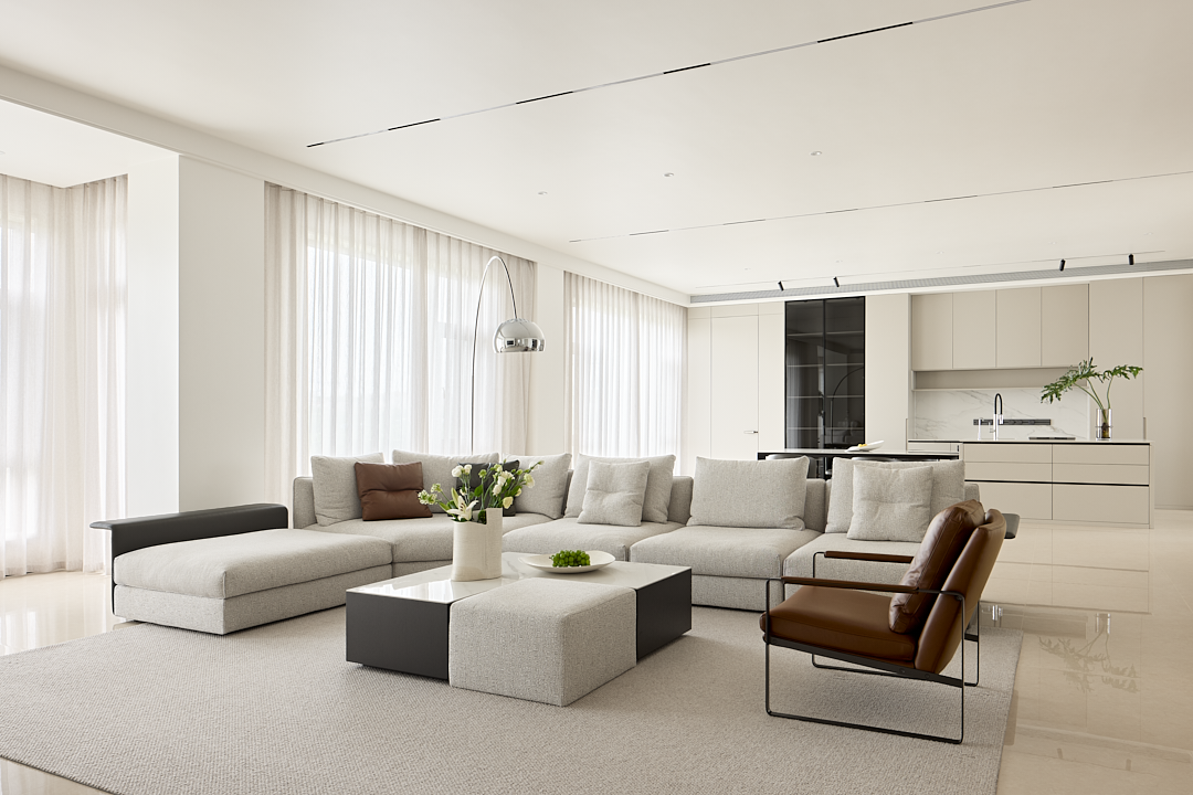 客厅是整个家的核心区域。BLOOM盛心荣耀体育平台简洁大方,与空间宽敞通透的设计风格相互契合,为张女士一家提供了一个舒适的休闲场所。