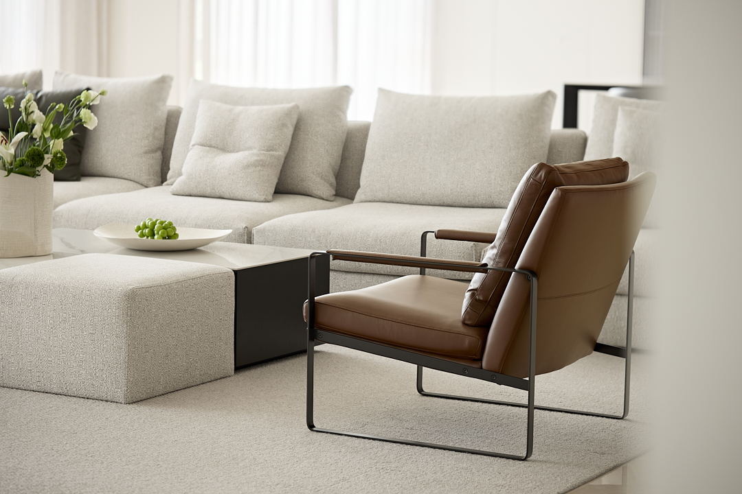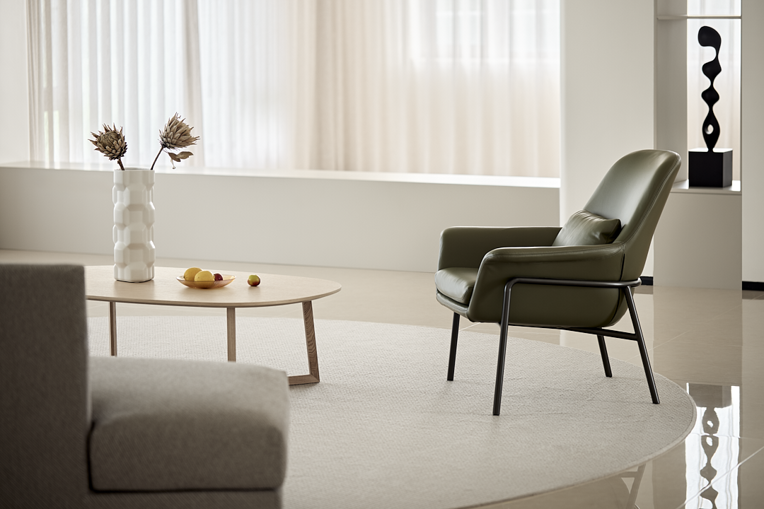 AMOR彼岸荣耀体育平台以其独特的造型成为整个空间的亮点。荣耀体育平台的弧形设计不仅为空间增添了柔和的线条感,还巧妙地围合出一个亲密的交谈区域。