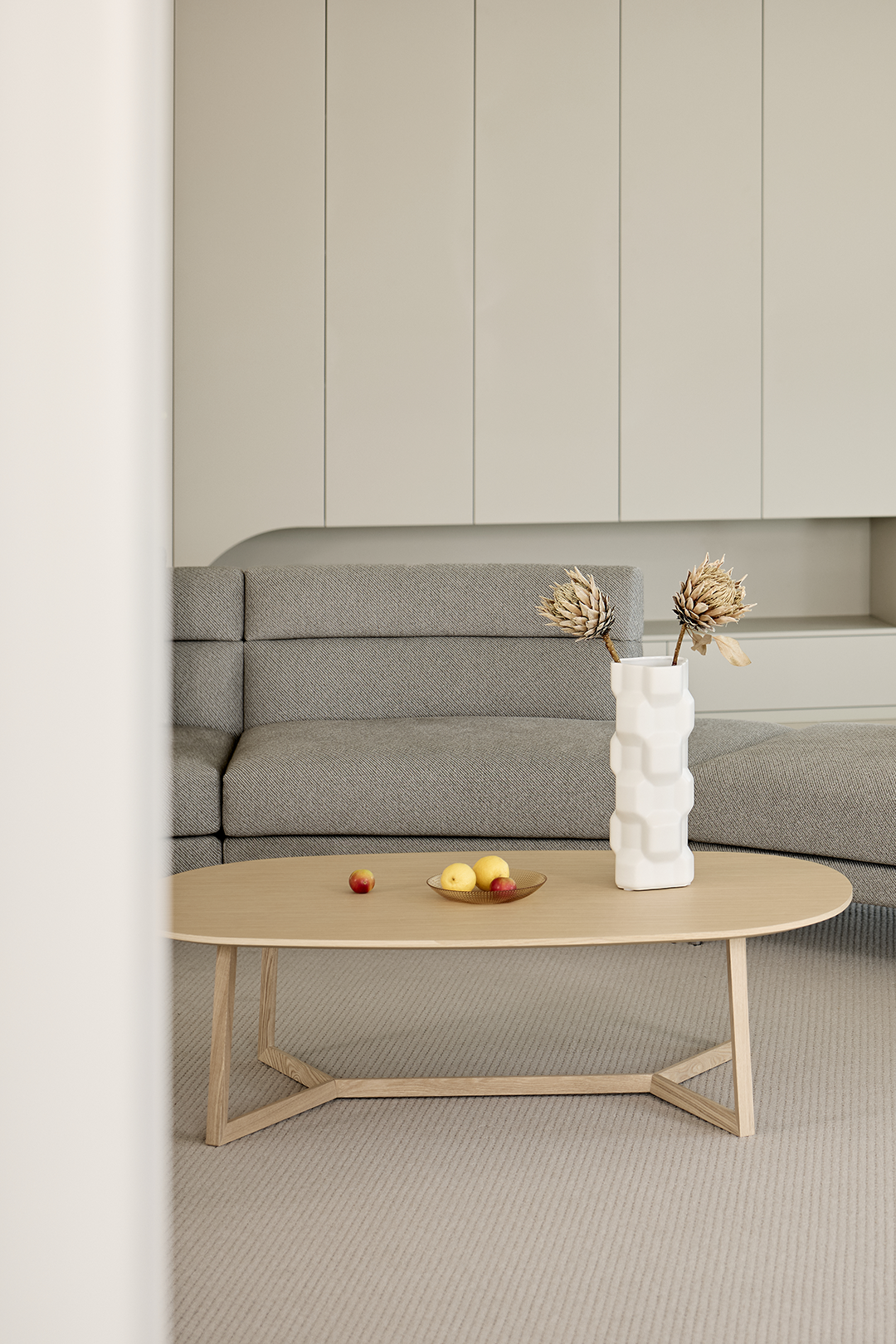 合理的餐厨动线,让日常的烹饪与用餐过程变得更加便捷,同时又不失美学享受。隐蔽式多功能储物柜设计,隐藏了生活的琐碎,让空间始终保持整洁有序。