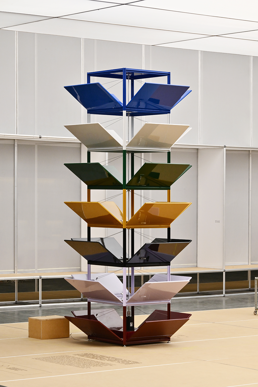 同时,展览将杭州、佛山、北京、嘉兴分别设定为研发、零件、结构、成品四个“车间”,并赋予相对应的视觉引导与展览文本。结合可以在场领取的《车间手册》中X System所关联的数十人的访谈,观展者可以深度理解四个地域所代表的研发与制造个体,如何通过这一件产品,折叠而成一个有机生态。