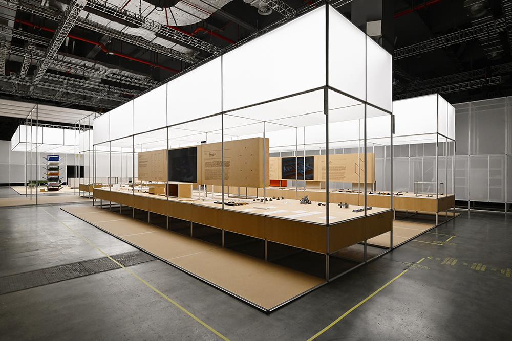 「折叠车间 X System Workshop」展览以“车间”为概念,直观地呈现X System的研发制造过程。展览现场整理了上百件实物,包括设计阶段的概念图、手稿、3D打印模型,打样测试阶段的原材料、模具,工艺开发阶段的零配件、不同表面处理的型材和结点,以及最终的部分成品等物件。