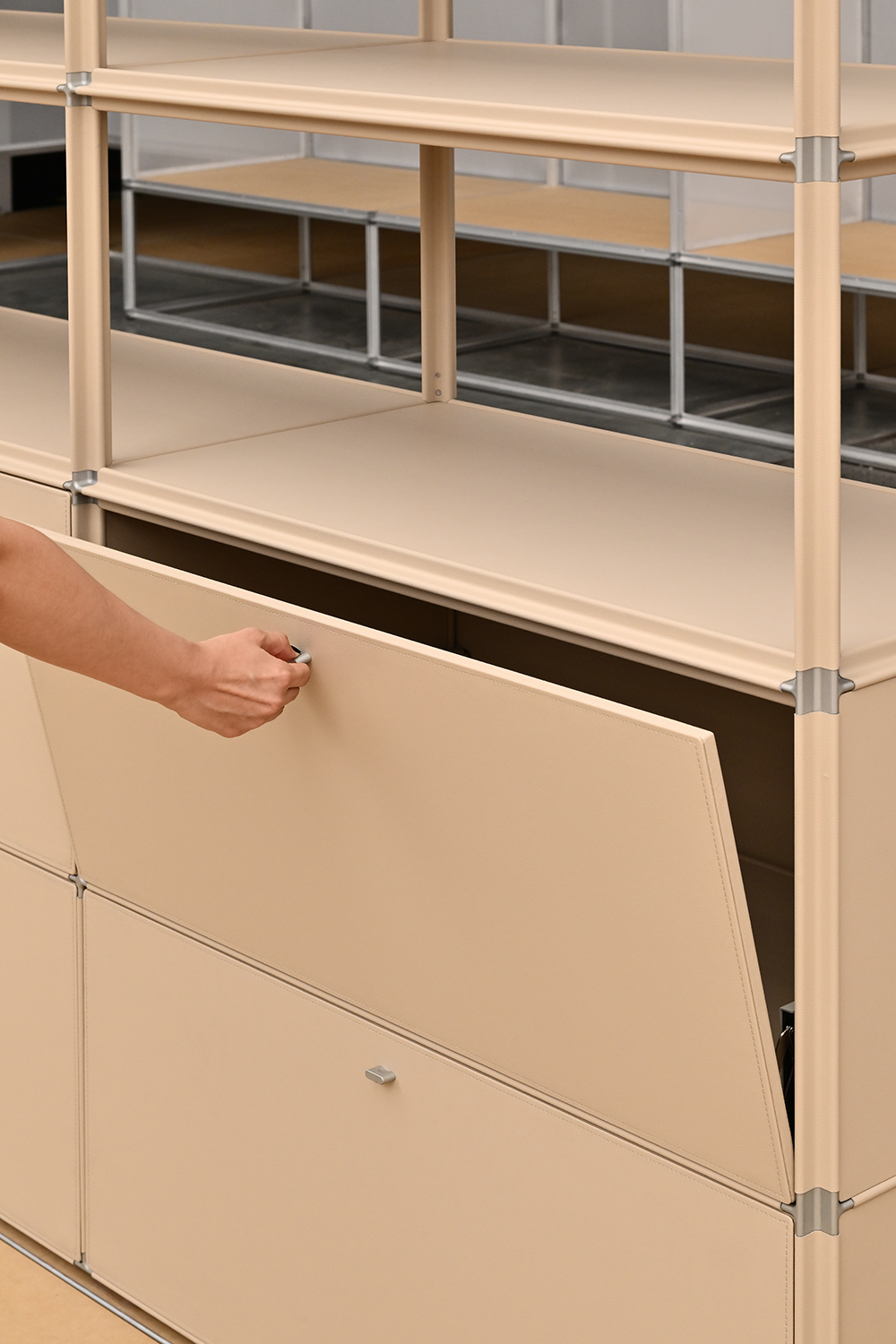 由铝型材、结点和面板构成的基础模块具备灵活的延展性,结合不同的材质和配件,可以组合出多种形态的家具。而对于生产制造而言,X System有限的零部件形态、量化的工艺标准以及精简的流程,不仅减少了因复杂工序和人工操作可能产生的误差,也令制造与设计之间有了更准确的兼容。