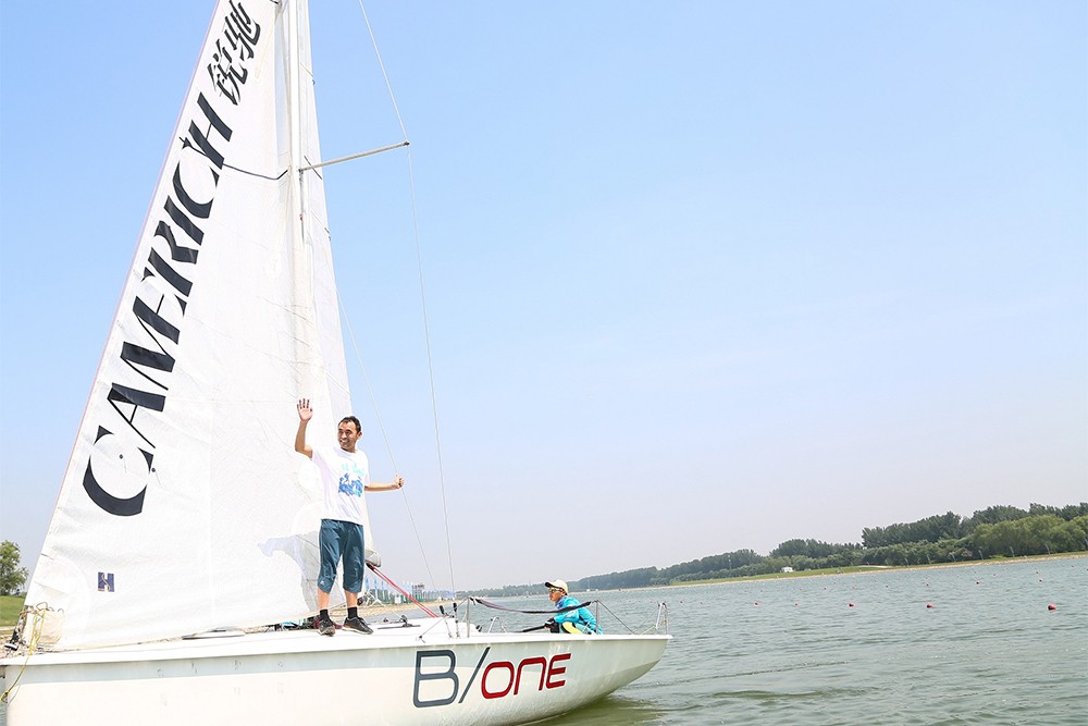 阳光下,碧水共蓝天一色。水面上闪过的一点白帆吸引了众人的目光,锐驰总经理傅海君先生站立船头,挥手微笑。