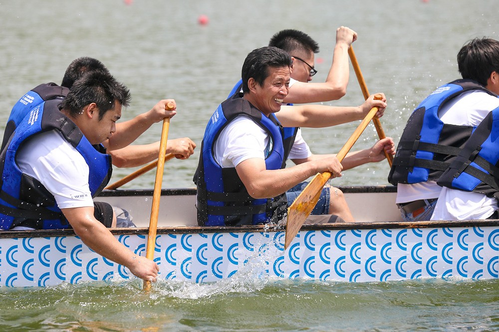 个人重修身,团队重协作!当心凝聚在一起的时候,统一了所有的船桨,它们步调一致地在水面上摆动着,每艘龙舟都在团结拼搏的精神推动下,行稳致远……